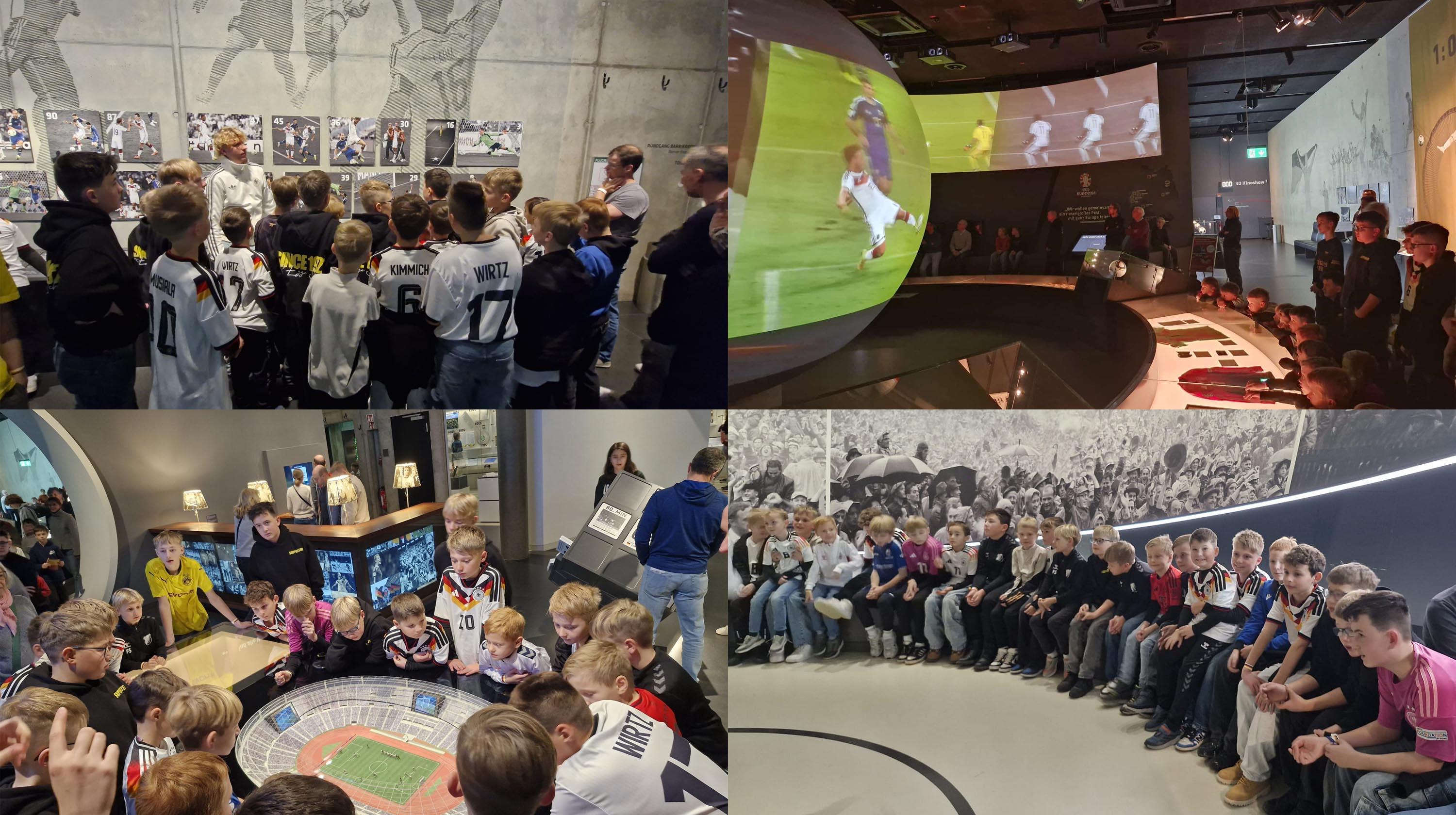 Im Museum wurden wir in zwei Gruppen aufgeteilt und begaben uns zunächst auf eine spannende Zeitreise beginnend mit dem Jahr 1954 – dem „Wunder von Bern“. Besonders beeindruckend war der Original-Spielball aus diesem legendären Finale. Anschließend führten uns die Rundgänge durch weitere große Momente der deutschen Fußballgeschichte, darunter die Weltmeisterschaften 1974 und 1990, mit dem entscheidenden Elfmeter von Andreas Brehme untermalt von zahlreichen Erklärungen, Filmen und interaktiven Stationen.